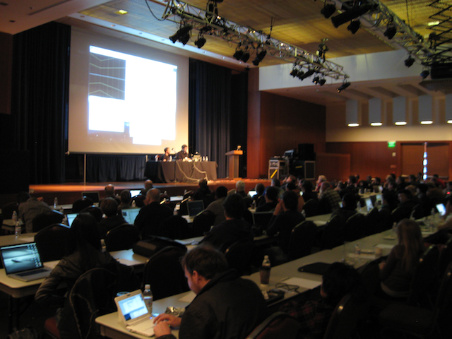 We had an open mic session to solicit feature requests. I had reservations about this, but no one threw any fruit at us and it seemed like we had an answer for about half of the feature requests that went like “good idea; it’s already done and will be released soon”. There was something really funny about Robert Henke coming up to the mic and humbly submitting his feature requests for Max with everyone else. I think it was a very democratizing experience.