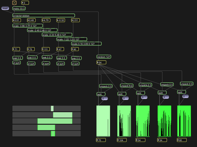 For last week’s foray into Max, I began with a Max patcher that was shared by Gregory Taylor at last week’s Expo ’74. In fact, I had it running before anyone even arrived and let it serve as my backdrop for the intro. It was my hook. Not only is the patcher really beautiful to watch as the motion ebbs and flows, but it is generating really useful data and demonstrates all of the basic principles of a Max patcher.